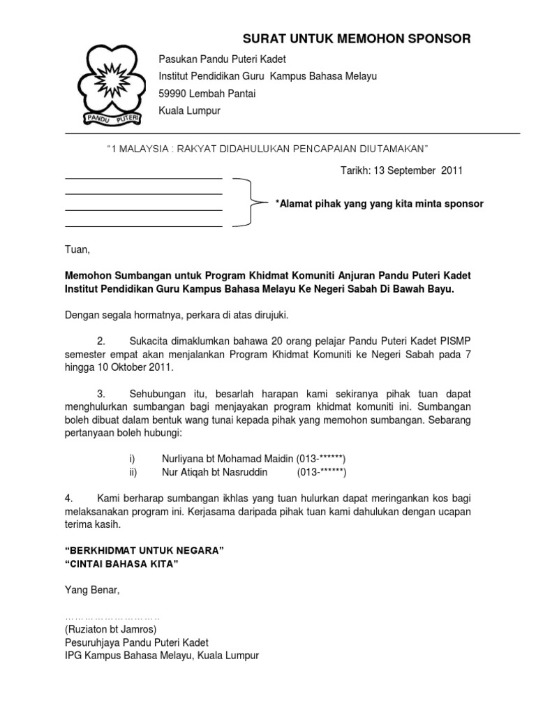 Contoh Surat Memohon Sumbangan Atau Tajaan E Perkhidmatan